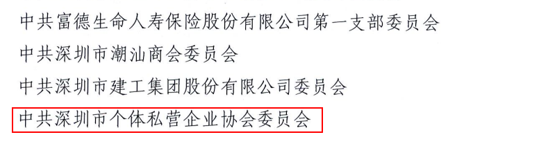 【小个专工作专栏(三)】祝贺协会党委荣获“深圳市非公党委先进基层党组织”称号
