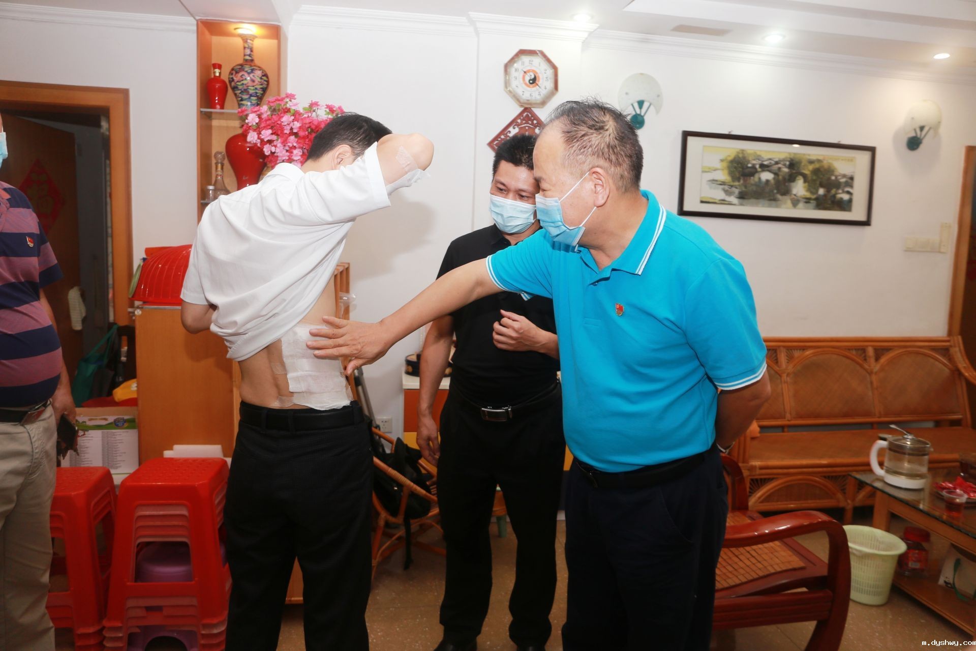 8月3日上午,在得知陈元锋的救人事迹后,市个体私营企业协会党委书记曾宏兴来到盐田区沙头角海山路翠景花园,看望慰问陈元锋,对他在危难时刻挺身而出、舍己救人的英雄事迹致以崇高敬意。曾宏兴说,陈元锋英勇救人的事迹充分彰显了“见义勇为、舍己救人”的党员形象,展现了共产党员冲锋在前、挺身而出、奋不顾身的胆气与优秀品质,值得点赞,希望协会广大党员要以陈元锋为榜样,用自己的言行影响和传递更多的社会正能量,加强宣传像陈元锋这样的好人好事,用实际行动践行共产党员在党史学习教育中“为群众办实事”的责任和担当。