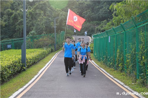 下午四点半,秘书处全体人员从淘金山山脚出发。大家身着统一的运动服,排成整齐的队伍,沿着山道前进,每个人朝气蓬勃,昂首挺胸。在健步走的过程中,大家欣赏着山上秋景,欢声笑语地交流着,享受着运动的快乐。整齐的装束、矫健的步伐、活跃的气氛顿时使健走队伍成为山上一道亮丽的风景线。