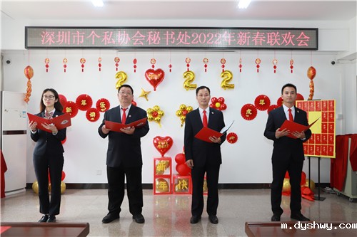 歌舞欢腾闹新春,虎虎生威踏征程。为充实员工文体生活,展现协会人饱满的热情、昂扬的斗志,在新春佳节来临之际,1月21日下午,市个私协会秘书处在五楼培训室举办2022年新春联欢会,全体员工上演了一场多姿多彩的“春晚”,献上寅虎新春祝福,为新的一年协会创新发展喝彩。活动特别邀请常务副会长林烈华、理事朱春龙作为嘉宾,与全体人员一起共庆新春佳节,同祝协会明天会更好。