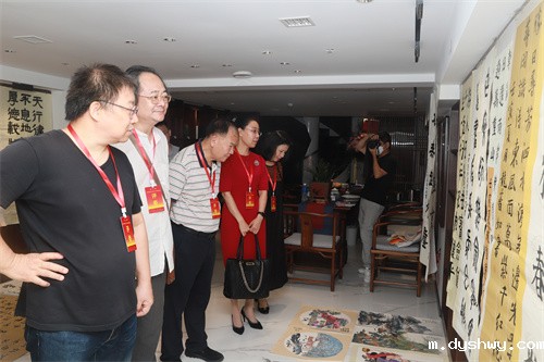 曾宏兴一行还观赏了适逢在石灵茶酒文化馆举办的 “国坤杯”深圳市第三届青少年书画大赛部分作品。