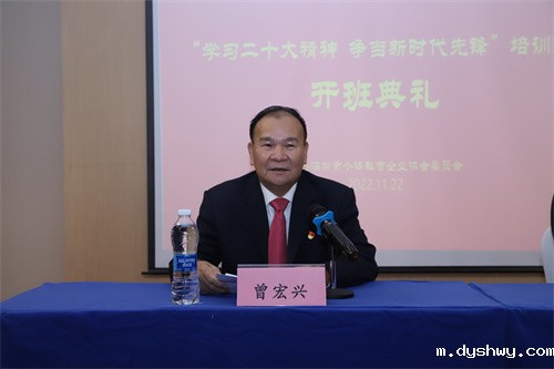 紧接着,曾宏兴作开班动员讲话。他首先对湖南大学领导和教授们对本次培训班的大力支持表示感谢,对全体学员如期参加培训表示感谢。他强调,此次举办湖南大学党建培训班,是践行习近平总书记关于加强基层党组织建设的一次具体实践,是对协会党委各基层党(总)支部书记、党员干部、骨干党员的专题培训,是加强协会党务干部、支持党建工作企业家理想信念教育,提升综合素质和工作能力,促进个体私营企业党组织建设全面进步、全面过硬,坚持思想建党、组织建党、制度治党的重要举措,更是深入学习宣传贯彻党的二十大精神,争当新时代先锋,进一步用习近平总书记系列重要讲话精神武装头脑、提高认识、汇聚力量的重要措施。他要求,通过5天的全脱产学习培训,全体学员要进一步坚定理想信念,加深党务工作者和支持党建工作企业家对非公党建工作重要性的认识和理解,提升基层党务工作者和支持党建工作企业家的政治理论素质、经营管理水平以及抓党建促发展的能力,实现企业党建强、发展强的目标,大力推动“小个专”党建工作水平进一步提高。