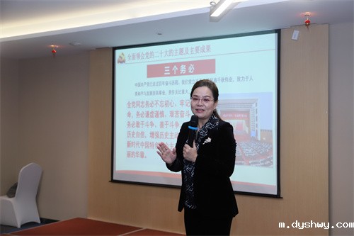 最后,中共湖南省委宣讲团成员、湖南省委党校科社部主任、二级教授、博士王蔚以《谱写新时代中国特色社会主义更加绚丽的华章——学习贯彻党的二十大精神》为主题,从“全面领会党的二十大的主题及主要成果、深刻认识新时代十年的伟大变革及其里程碑意义、不断开辟马克思主义中国化时代化新境界、牢牢把握新时代新征程中国共产党的使命任务、贯彻落实新时代新征程的战略部署、用新的伟大奋斗创造新的伟业”等六个方面,宣讲阐释了党的二十大精神。